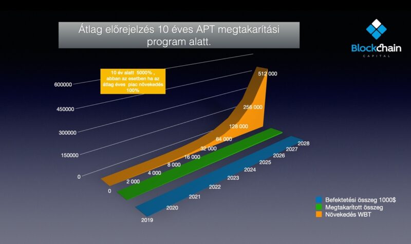 A Blockchain Capitalnál az APT programmal a tőke akár több százszorosára növekedhet úgy, hogy ezalatt egy speciális életvédelmi kiegészítést is tartalmaz az okosszerződés. A hosszútávú megtakarítás magába foglal egy pénzügyi megtakarítási eszközt úgy, hogy minden itt elhelyezett összeg 70%-a WBT-ben fog növekedni. A WBT megtakarításban lévő összeg a nap 24 órájában likvid, azaz szükség esetén hozzáférhető.
